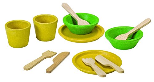 -. Feature : Set the table with this colorful kid sized tableware / Includes two place settings 2 plates, 2 bowls, 2 cups, 2 forks, 2 knives, and 2 spoons / PlanActivity toys are designed to support dramatic play, group play and open ended activities / Included in the PlanActivity line are childsized kitchen appliances, kitchen accessories, ride-on toys, discovery toys, play sets and impulse items / PlanActivity toys are designed to stimulate creativity and imagination for many happy hours of play