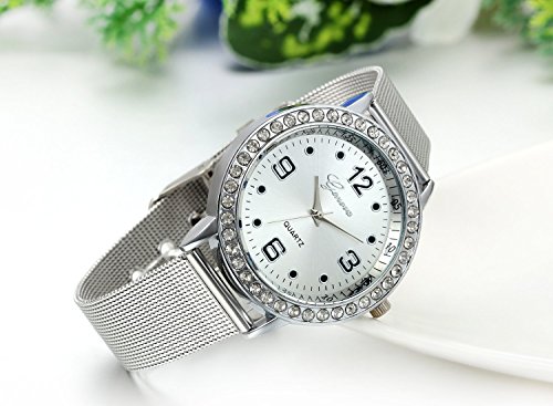 -. Title : JewelryWe Women's Fashion Silver Tone Stainless Steel Mesh Watch Quartz Analog Wristwatches