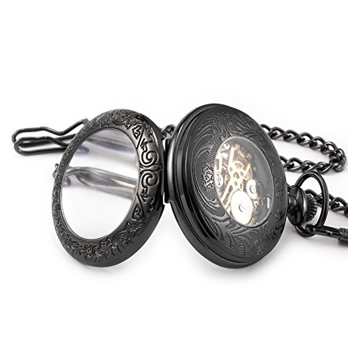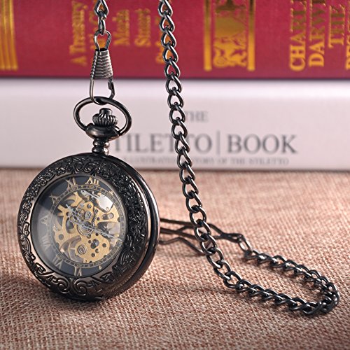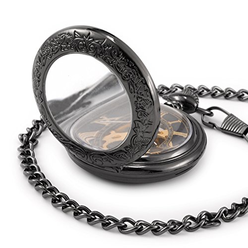 -. Binding : Watch -. Brand : Sinopic -. Color : Black -. Department : Unisex-adult -. EAN : 0735346313025 -. Feature : Perfect hand wound pocket watch as gift for special days like Black Friday, Halloween, Thanksgiving, and Christmas! / Half hunter steampunk chrome plated case with mechanical movement and gold roman numerals and skeleton black dial display for Sinopic brand-new antique victorian pocket watch. / Super harmony with the perfect combination of vintage chrome case treated by anti scraping process and prettily engraved with flowers on the back . / Winder is At 12 O'clock Position and please wind up in a clockwise direction .Every time a wind-up skeleton pocket watch could work for 24 hours . / Comes with durable metal chain(length:14.8 inches) and 1 Year Guarantee And Branded Packaging . -. Label : Sinopic -. Manufacturer : Sinopic -. Model : 30010063 -. MPN : 30010063 -. PackageQuantity : 1 -. PartNumber : 30010063 -. ProductGroup : Watch -. ProductTypeName : WATCH -. Publisher : Sinopic -. Studio : Sinopic -. Title : Sinopic Hunter Case Pocket Watch for Men or Women with Vintage Gold Roman Numerals Skeleton Black Dial -. UPC : 735346313025