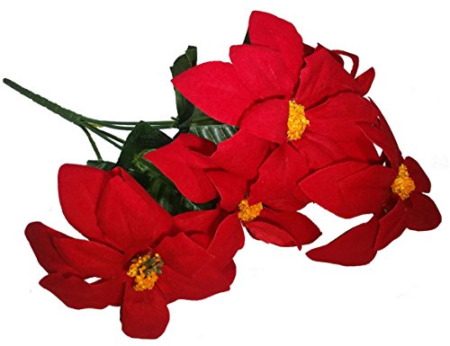 - One Artificial Velvet Poinsettia Bouquet, 5 stems