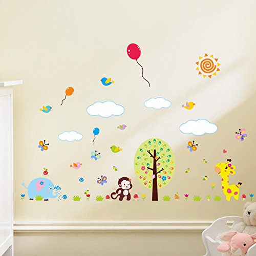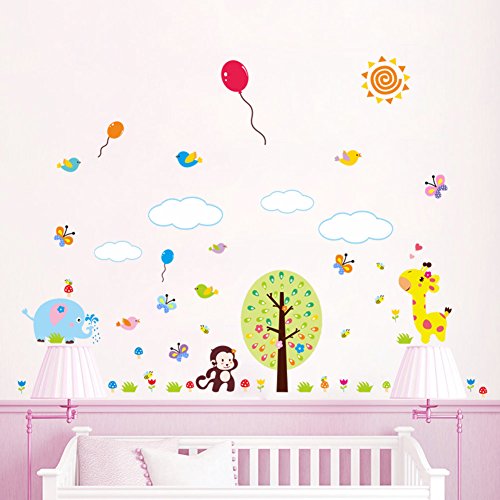 CQI Cartoon Monkey Elephant Giraffe in the Forest DIY Home Decal Vinyl Wall Sticker Art Décor for Kids Room