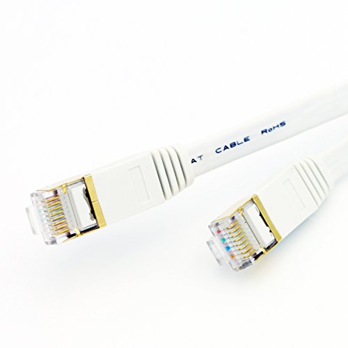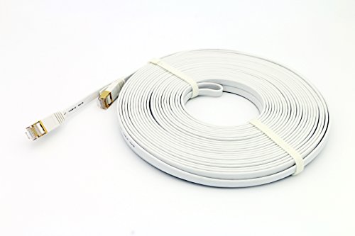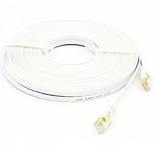 WAWPI Internet cable Flat Cat7 30AWG High Speed Ethernet Patch Cable, Gold Plated Plug Wires Networking Cable 65Feet
