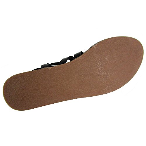 Product DescriptionMulti strap caged gladiator flat sandal with ankle buckle closure0