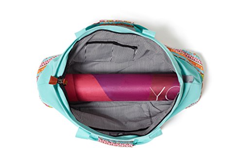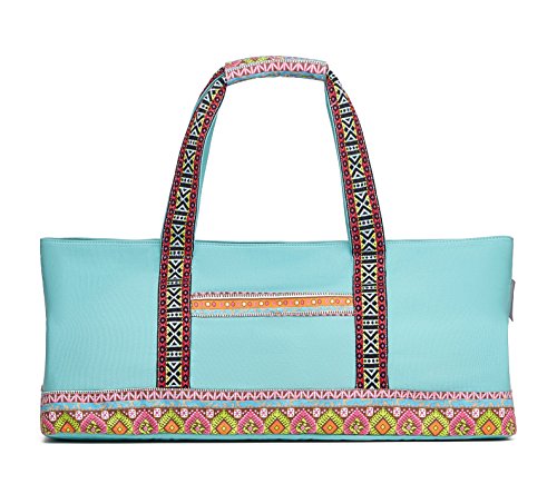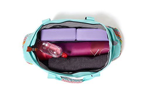 LARGE: fits standard 24 inches wide mats, two blocks, towel, water bottle, change clothes and other small valuables. Easy to open and get things in and out with full zipped top.