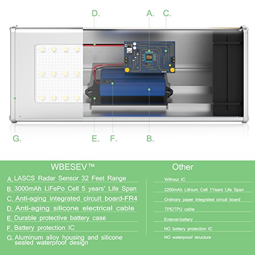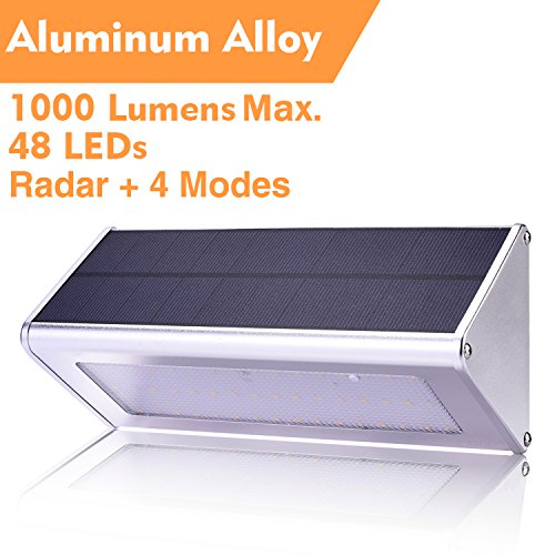 WBESEV Solar Lights Outdoor 1000 Lumens (Max) 48 LED Radar Motion Sensor Light Aluminum Alloy Housing Waterproof Wireless for Outdoor Security Garden Yard Wall Light (5th Upgraded 2017)