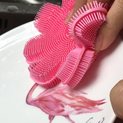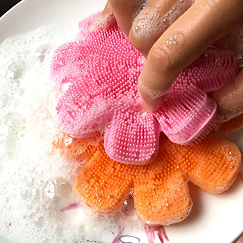 Made of high quality FDA-approved Silicone. It could be used to wash dishes, glasses, vegetables and fruit.
