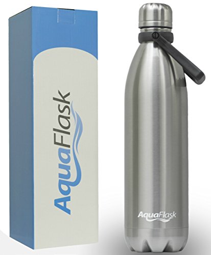 • The 27-ounce insulated stainless steel AquaFlask features double-wall vacuum insulation technology that will keep your beverages hot or cold for hours.• Convenient rotating handle makes carrying a breeze!