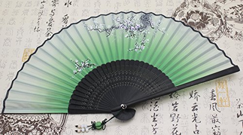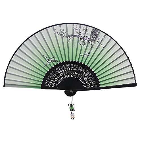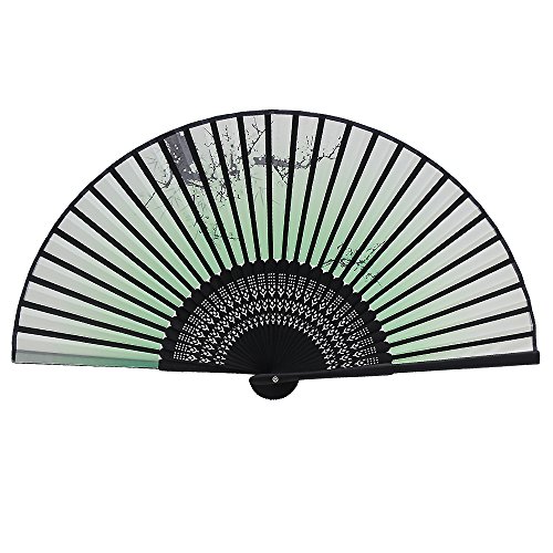 Alay&me Handheld Fan Exquisitely Folding Fan Gift Fans Hand Fan Silk Plum Blossom Traditional Style (Black Ribs)