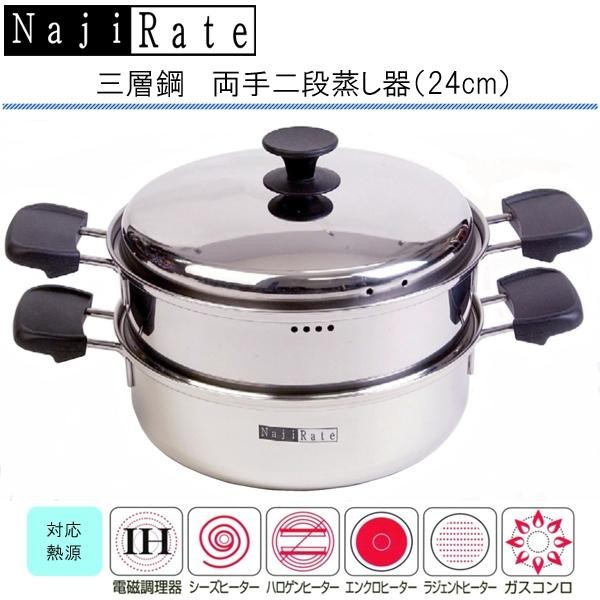 | ステンレス製品の名産地、新潟県燕市でつくられた二段蒸し器です。三層鋼は熱伝導に優れた鉄を、耐久性に優れた18-10ステンレスで挟んだ素材で、熱がムラなく伝わり、優れた保温力で効率よく調理ができます。表面はステンレスですのでサビやキズに強く、お手入れも簡単です。 |