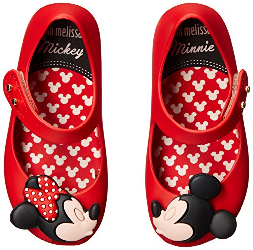 Precious mary jane toddler shoes. Minnie and mickey mouse kissing detail. Made in brazil, 100 percent recyclable plastic.Feature