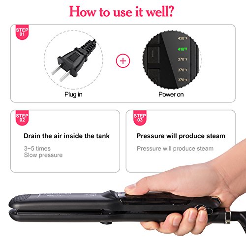 The latest activate steam technology,Steam straighteners for hair,Vapor water help add moisture and gloss to hair and prevent damage.you can create a smooth and mirror-like shine black hair straightening at home