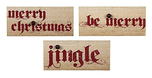 Jingle Bells Merry Christmas Stretched Burlap Wall Art Plaque Set of 3