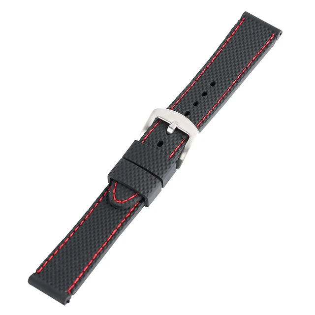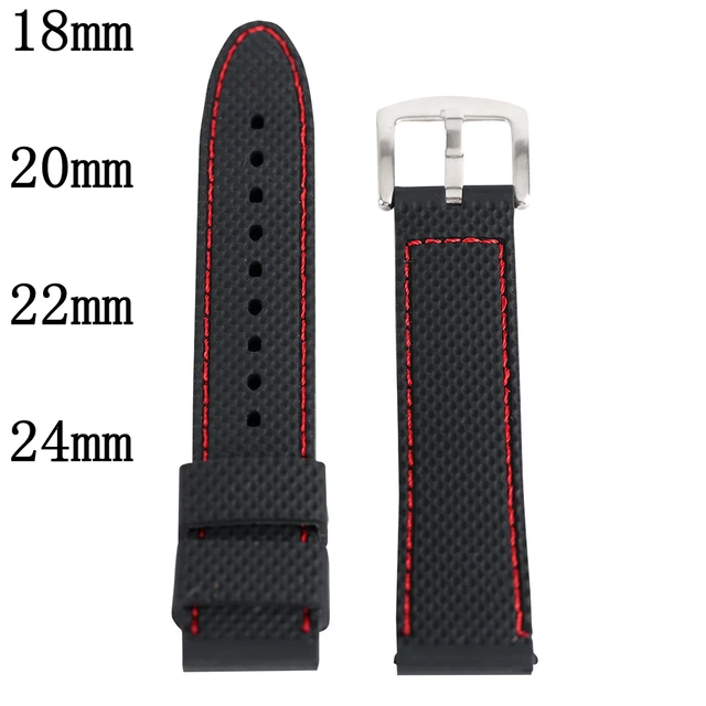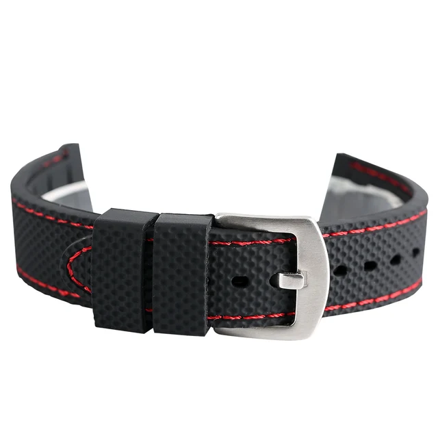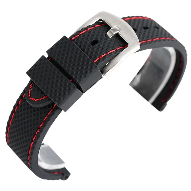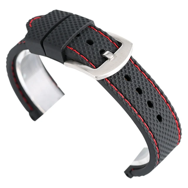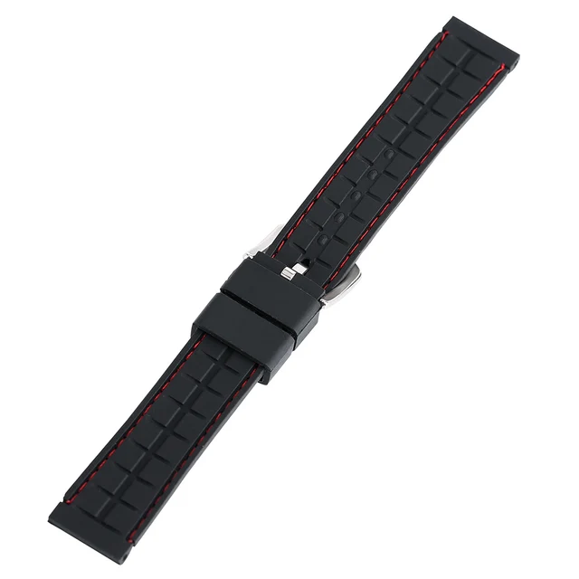 [해외] 실리콘 스포츠 시계 밴드 18 20 22 24 미리메터 블랙 레드 스티치 방수 시계 스트랩 시계 실버 스틸 버클 Relojes 아저씨 2017