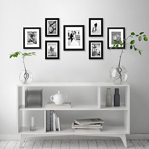 -. Feature : HIGHEST QUALITY MATERIAL: This 7 piece multi pack set of seven black picture frames comes in various sizes, perfect for framing your seven favorite pictures on your wall. Excellent value! / PROTECT YOUR PICTURES: The glass front will keep your favorite photos looking great for years. Easy-open tabs on the back let you load your photos quickly and easily. Hang the frame on the wall to showcase your family and all the memories or stand the frames on a table or mantle with the included easels. / VALUE SET: The multi-pack includes the following sizes: four 5x7 inch with a 4x6 mat, two 8x10 inch with a 5x7 mat and one 11x14 inch with an 8x10 mat black frames. The actual mat openings are .5 inches smaller. We recommend taping your photos to the back of the mats. / ENHANCE YOUR HOME: These beautiful frames will look great on your wall or anywhere in your home or office. Build your very own gallery wall or use the frames as gifts for friends and family. / PROTECTIVE PACKAGING: Americanflat developed exclusive proP.R.Ietary packaging that helps ensure safe delivery of fragile and glass items. Order with confidence, click and add to cart today.