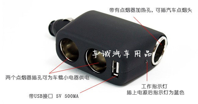 [Name] USB a drag three cigarette lighter power distributor with heated hole