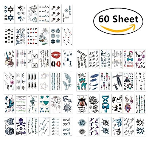 -. Feature : *Quality waterproof tattoos - 100% waterproof and sweat-proof, tattoo may last for 3-5 days. These stylish tattoos are non-toxic and safe to wear. Fun for all ages, including kids & adults, and can be worn anywhere on your body you like such as waist, chest, neck, arms, back, legs, bikini, you can also use it to cover scars, etc. / *Over 180+ stunning designs - 60 sheets temporary stylish tattoos with the size 4.1 x 2.4 inches, more than 180+ vibrant tattoo designs in various color. They are very latest hot & trendy designs, including feathers, flowers, birds, deer, owl, skull, stars, moons, tribal, necklaces, bracelets and many more. / *Easy to apply and remove - These stylish foil tattoos are easily removable by rubbing alcohol or baby oil, coconut oil, or olive oil. Wait 10 seconds, rub alcohol or baby oil until removed. Please avoid soap, sunscreen and oils to prolong the life of your tattoos if you want to keep it for a few days. / *Create Your Own Body or Craft Art - Easily customize and create your own unique body art! With a touch of charming tattoo stickers, you will make any bachelorette party more fun and fabulous or enjoy using them at the beach to add fun to your swimwear and summer wardrobe. Use them to decorate everything well, including your handbag, cosmetic container, laptop as well as cell phone, make your carryon sparkly and cute. / *Perfect for Various Occasions - Gorgeous and bright Designs will accessorize your outfits perfectly when you go to the music festivals yoga vacations costumes concerts bachelorette parties etc. Also A good choice for beach, at festivals, Halloween, Christmas parties, nightclub, concerts, weddings or any occasion, these tattoos will make you look different. And you can share with your friends, lover or family members as a meaningful sign.