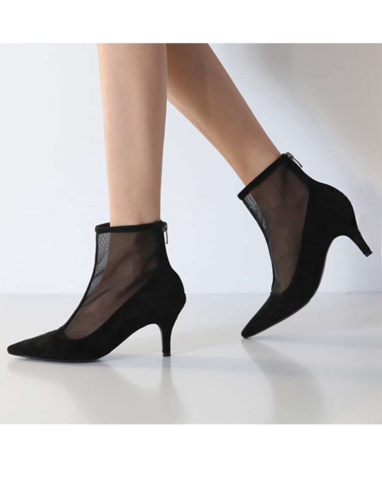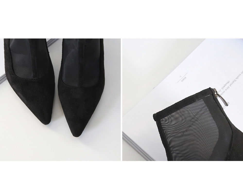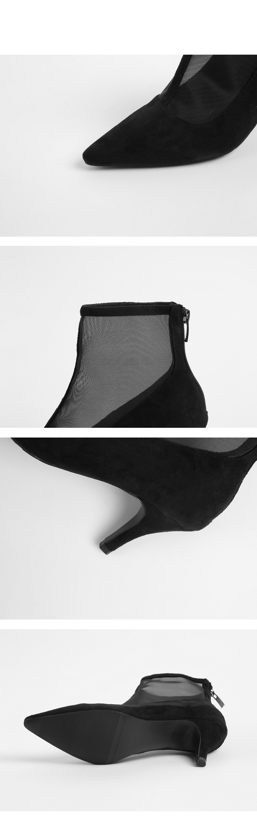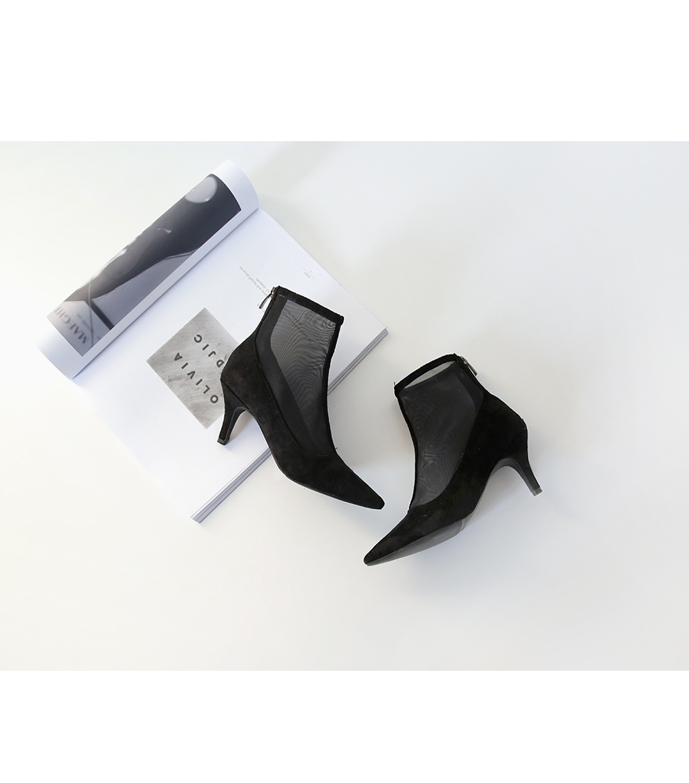 스웨이드소재와 스킨톤이 비쳐올라오는 메쉬소재가