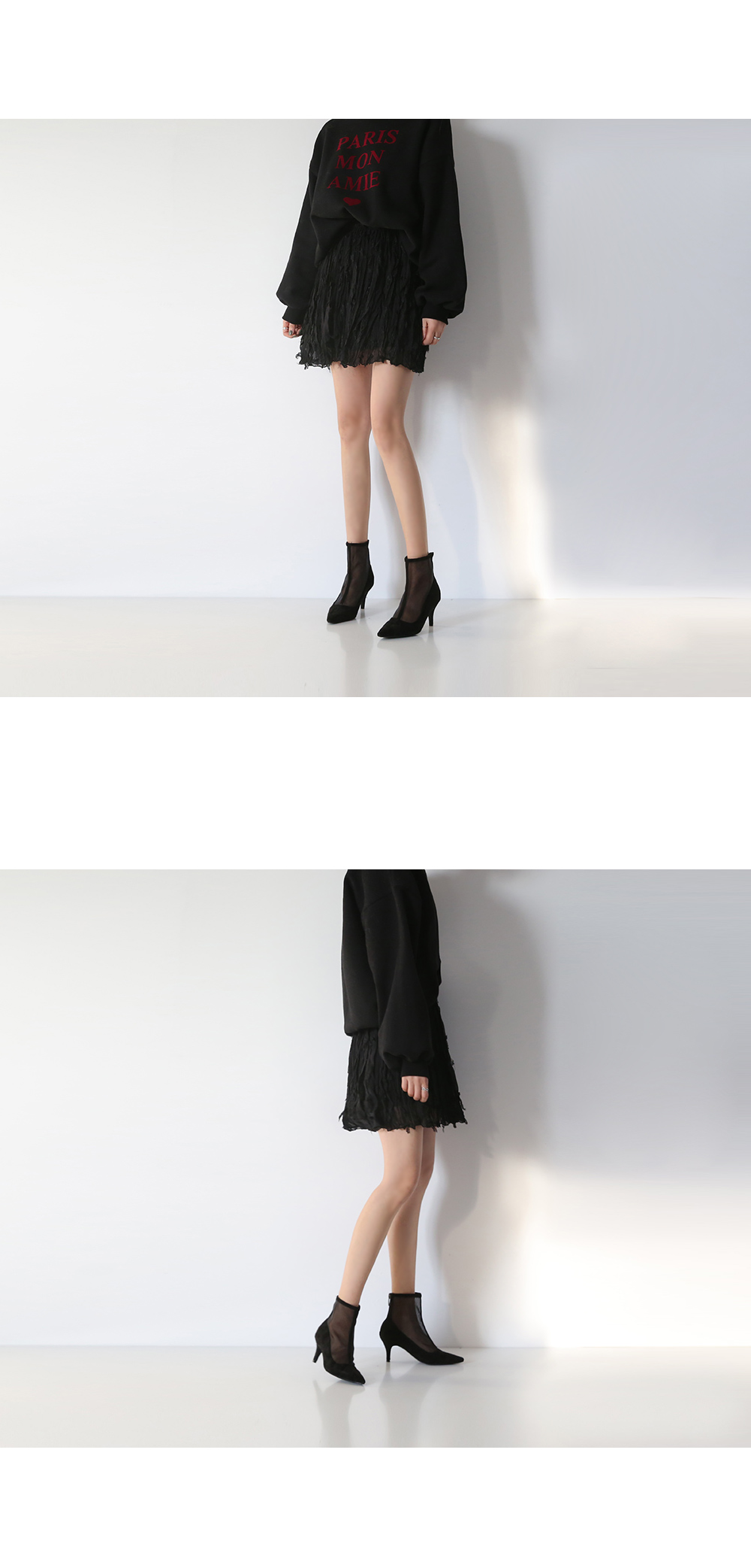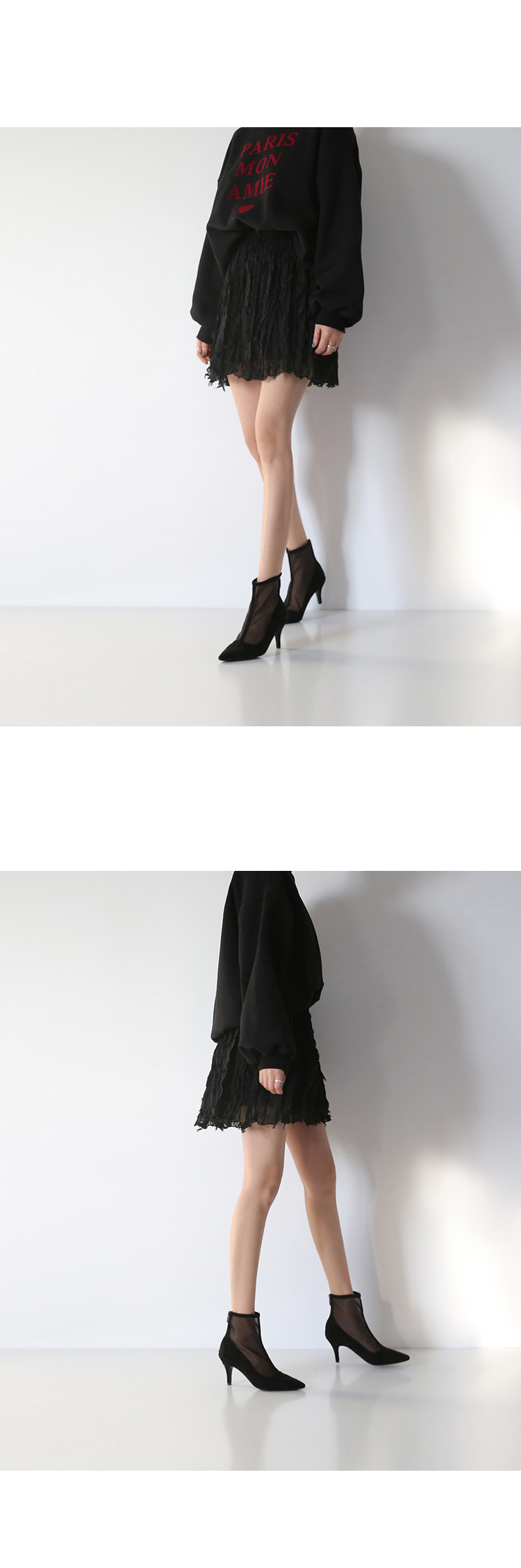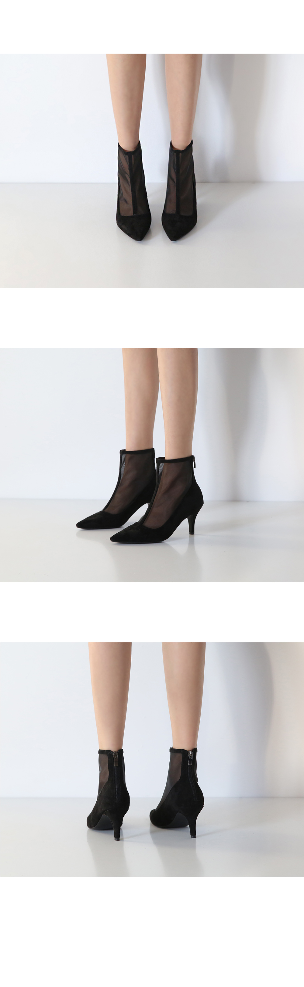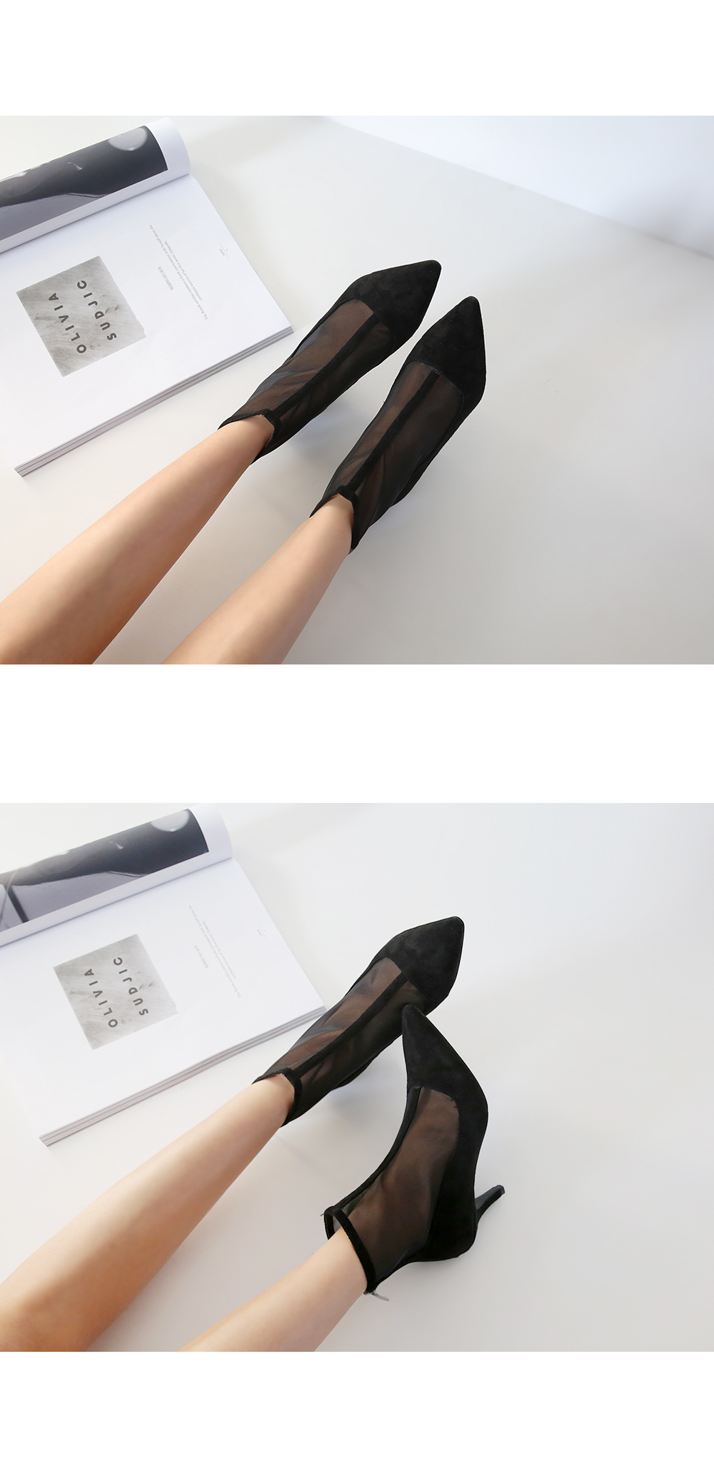 스웨이드소재와 스킨톤이 비쳐올라오는 메쉬소재가