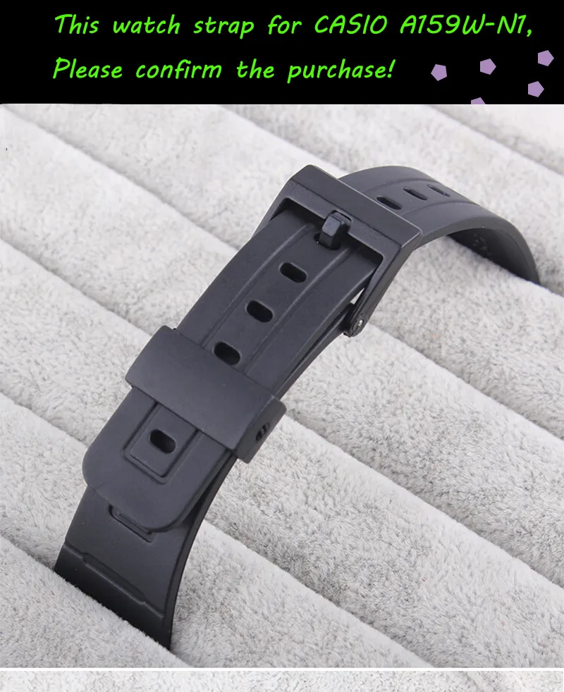 품질 블랙 실리콘 스트랩 카시오 카시오 A159W-N1 시계 밴드 남성 팔찌