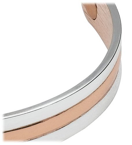 Product DescriptionTwo-tone jewelry is very popular, and the combination of silver and copper finishes makes this bracelet unique.0