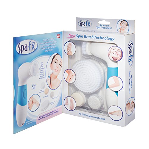 -. Feature : Gently sweeps away dead skin cells and thoroughly deep-cleans face and body / Give your face a spa treatment right in your own home / New spin brush technology gently rotates to clean, massage & exfoliate / Five piece set includes facial scrub brush, sponge brush, pumice stone and body scrub brush / Waterproof and cordless!