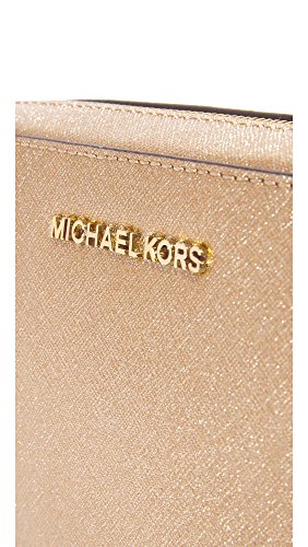 Polished logo lettering accents the front of this saffiano leather MICHAEL Michael Kors cross-body bag. The top zip opens to a logo-lined 2-pocket interior. Adjustable shoulder strap.