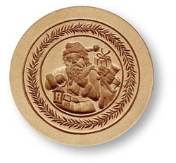 Studio : Anis-Paradies Publisher : Anis-Paradies Product Description This old-fashioned Santa Claus cookie mold is exquisitely carved. Santa is decked out in a belted fur trimmed coat and cap. He carries a lantern in one hand and a bag of presents in the other. Clearly, he's a jolly old elf! He's surrounded by a delicate evergreen wreath. If you're looking for a classic Santa Claus cookie mold, this is the one to buy! This mold is made of a food-safe resin that is unbreakable and waterproof. It comes with metal eyelet hanger attached at top for display on a wall. Please note that the impression in the alternate photo is provided for you to see what a cookie made with the mold might look like. The impression is not sold with the mold. 0