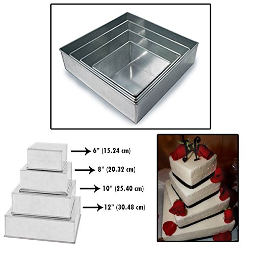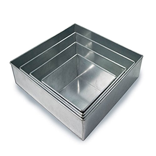 Set of 4 Tier Square Multilayer Birthday Wedding Anniversary Cake Tins / Pans / Mould by Falcon 4" Deep