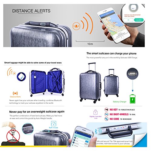-. Brand : Payeel -. Department : unisex-adult (lage only) -. Feature : Weight scale handle:When you lift the lage, the weight of lage will show on the handle,there are three switching units,(kg/lb/oz),worldwide / Innovative Bluetooth(APP) + TSA lock: Through the bluetooth connect lock with your phone, open and close the lock by the app,more safe and convenient / Built in charging port:Put your own power bank into the distribution pocket, you can charge at any time(Power bank is not included) / GPS positioning + Alarm:Use GPS to positioning.When the lage out of the safety distance(About 10M), lage and phone will alert,you also can call the suitcase through the app,the suitcase will sound an alarm,easier to find it . / Set of 4 Universal wheel:Multi-Directional wheel,move your cases in any direction -. ProductGroup : Apparel -. ProductTypeName : LAGE -. Size : 20inch -. Title : Payeel Multi Function Smart Lage GPS Remote Locking Battery Charging Port