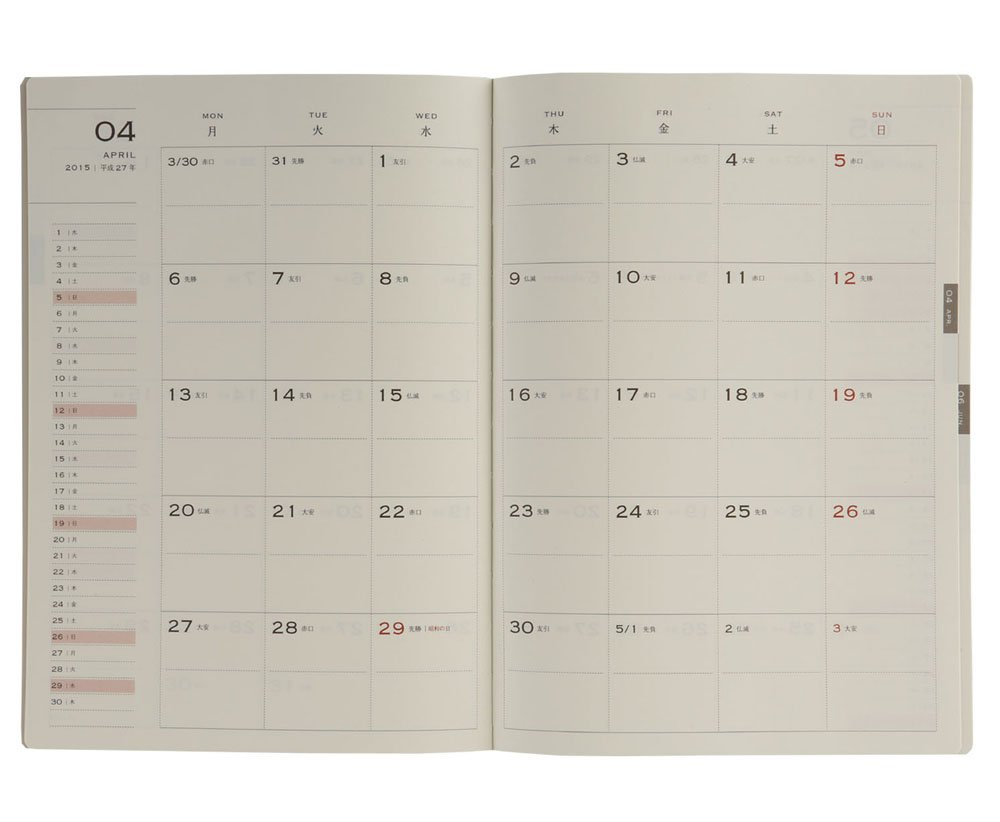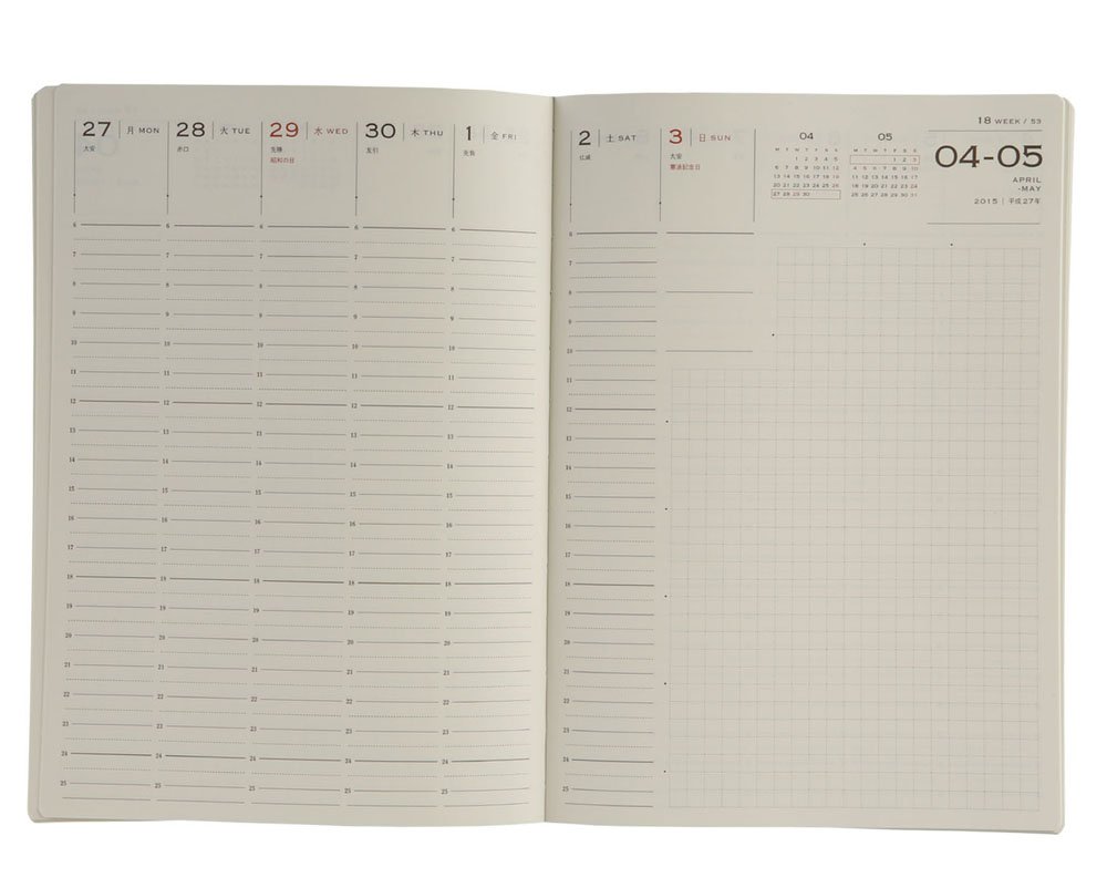 It's very easy to use with 2 page spread. There is a memorandum on the right side, but there is a grid there, it is very easy to write. However, the time axis may be up to 25 o'clock, but since I have not got up until midnight, I think that I do not need it, but I would like to fill in a diary or the like and use it after devising it . Compared to the past paper quality, the previous LACONIC was easier to write, so I made it to four stars. Also, the font of numbers? I like. It's big and easy to read.