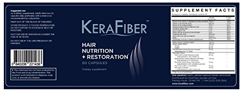 -. Binding : Misc. -. Brand : KeraFiber -. EAN : 0640206221436 -. Feature : A unique combination of Vitamins, Folic Acid and Biotin along with a proP.R.Ietary formula of other ingredients to deliver the perfect balance of nutrition and health to the scalp and hair. / Supports growths of hair cells, resulting in stronger hair follicles and increases ability to retain hair. / Enhances the elasticity of cortex of your hair and minimizes hair breakage. / KeraFiber is the original, safe, drug-free and scientifically proven solution for hair strengthening and hair preservation -. Label : KeraFiber -. Manufacturer : KeraFiber -. MPN : B00LUPZOCI -. PackageQuantity : 1 -. PartNumber : B00LUPZOCI -. ProductGroup : Beauty -. ProductTypeName : BEAUTY -. Publisher : KeraFiber -. Size : 60 Tablets -. Studio : KeraFiber -. Title : KeraFiber Hair Nutrition+ Restoration Supplement -. UPC : 640206221436