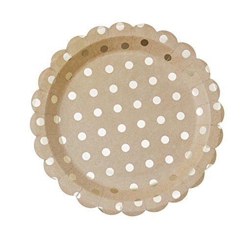 Ginger Ray PM-955 Pick And Mix Kraft & Polka Dot Paper Party Plates (8 Pack), Gold