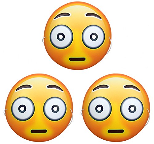 Dubster Brand Emoji Alarmed Flushed Face Character Costume Mask, Pack of 3