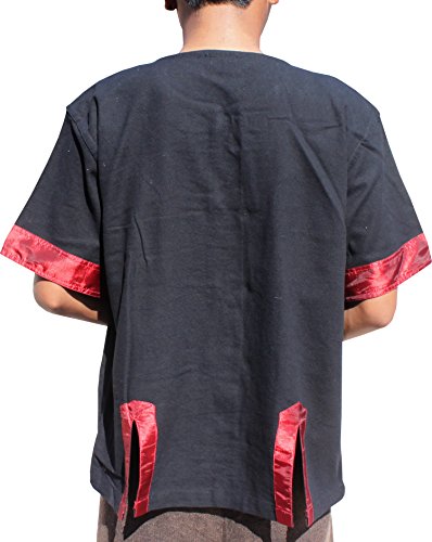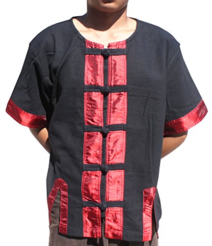 Raan Pah Muang RaanPahMuang Short Sleeve Round Collar Silk Trim Thai Farmers Shirt