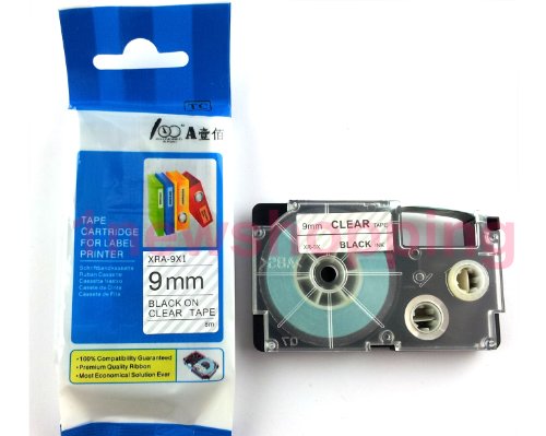 Great quality Compatible for Casio Tape 9mm BLACK on Clear Label XR-9X1