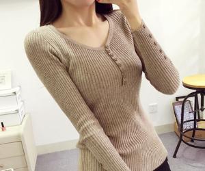 大人きれいなVネックニットカットソー♪
