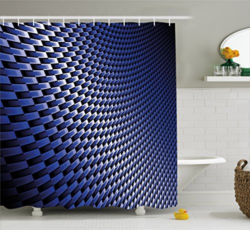 Dark Blue Shower Curtain by Ambesonne, Curvy Carbon Fiber Texture Image Abstract Industrial Modern Grid, Fabric Bathroom Decor Set with Hooks, 70 Inches, Dark Blue Royal Blue White