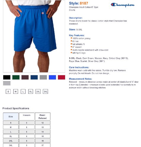 | Champion 6.1 oz. Cotton Jersey Shorts 6.1 oz. Cotton Jersey |
