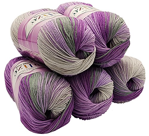 Alize Cotton gold wool 5 x 100 gram multicolored (gradient), 500 total grams (17,63 oz) knitting yarn 55% Bamboo natural 1805 yds (1650 meters) (berry lilac gray 4149)
