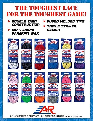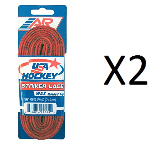 New AR 2 Pack USA Hockey Striker WAXED Molded Tip Skate Laces RED 72"-120"