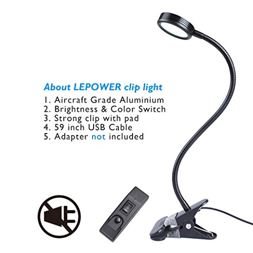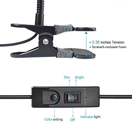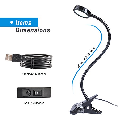 FLEXIBLE GOOSENECK: The clip lamp arm is made by metal tube covered by silicone hose. Easy to twist and set the perfect lighting direction and viewing for your need.