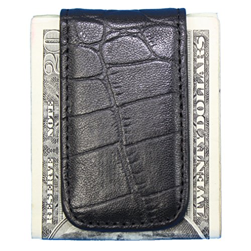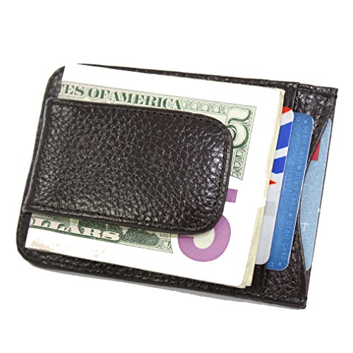Men's slim genuine leather credit card and ID holder wallet with magnetic money clip.