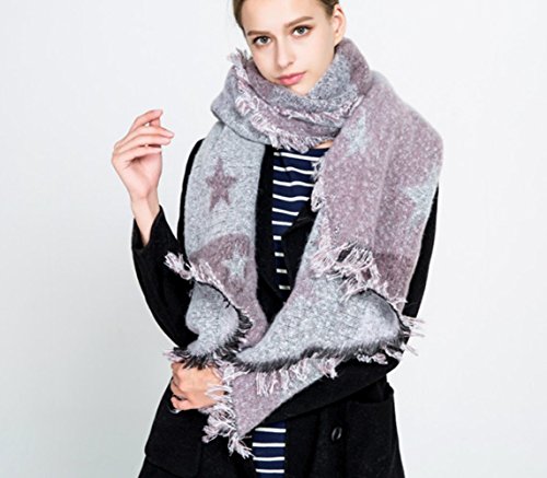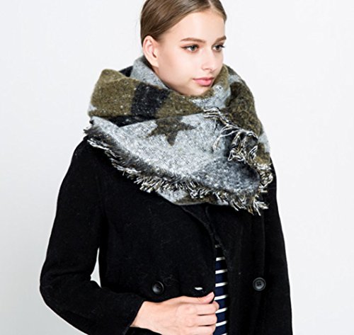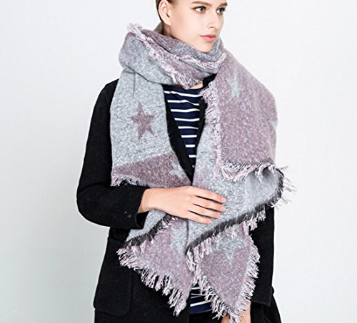 YUNEE Five-pointed Star Pattern Cashmere Tassels Scarf Wrap Shawls