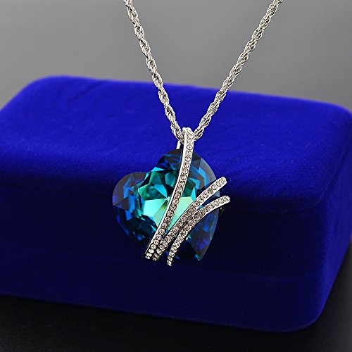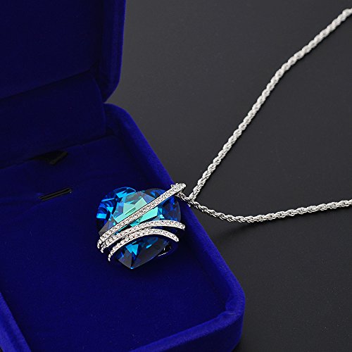 "Heart Of the Ocean" Blue Heart Pendant Necklace Made with Swarovski Crystals