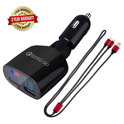 -. Feature : 【FAST DUAL USB CHARGING PORTS】Qualcomm Quick Charge 3.0 port charges device up to 80% of the battery capacity in just 35 Minutes,about 60mAh/Min.4x faster charging speed of conventional car chargers, + Smart Adaptive Charging port with dedicated 2.4A output for all non-Quick Charge devices. / 【LED DIGITAL DISPLAY】Lightful LED screen to display charging status,vehicle battery voltage and unique LOW VOLTAGE ALARM, when the vehicle voltage under 11.8V or between 18V and 23.8V, the buzzer alarm will ring automatic.once 10 seconds per 30 seconds,please prepare yourself mentally / 【90 DEGREE FOLD & PREMIUM COMPONENTS】 This car charger has a 90 degree swiveling head pivot, providing flexible and convenient angle adjustment to view the LED screen which is a perfect fit for any car cigarette lighter.employs a Sleek and robust zinc-alloy shell providing great flexibility to assure a stable and fluent connection. It has a 1000 Times recharging capability providing worry free uninterrupted operation. / 【COMPACT DESIGN & FULL PROTECTION】Ultra-compact design with small and lightweight features, Crafted with ABS+PC fireproofing materials, smart chips and intelligent circuits to protecting your devices against excess current, over-charging and over-heating for safe rapid charging operation certified as CE/RoHS/FCC compliant / 【100% SATISFACTION OR YOUR MONEY BACK!】We believe that you deserve the best quick charging experience! we developed this fantastic car charger to make you can have the fastest charing speed.that's why we offer Free Lifetime Technical support and 24-month Manufacturer's Warranty and hassle Free Replacement or Money Back in 3 months.Buy this car charger at the best P.R.Ice/service available in the market. ADD TO CART NOW!!!
