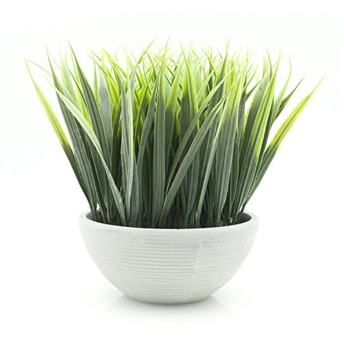 Velener Extra-Long Artificial Grass in White Pot for Home Decor (Green)