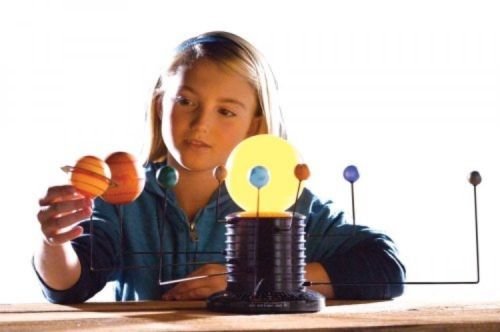 - Feature : Educational Insights Geosafari Motorized Solar System / Product Features: Observe the vastness of space in a dramatic light show Base features planetary longitude marks so the planets can be set up to their correct positions A/C adapter not included Includes a Stardome that converts the unit to a planetarium The central tower and the planetary support rods are black so that they "disappear" in a darkened room for a spectacular effect The unique stardome converts the unit into a planetarium / Product Details: GeoSafari Motorized Solar System Introduce the Solar System Model to children View larger GeoSafari Motorized Solar System Children will be able to see the sun's light illuminating the planets. View larger GeoSafari Motorized Solar System The Motorized Solar System and Planetarium takes the abstract concept of the solar system and brings it to life with light and motion. The activities make for a powerful, hands-on learning experience. To teach children about stars and constellations, use the star dome to transform any classroom into a planetarium. / Includes: Central towerEight planet orbs plus one dwarf planet orb with identifying planetary symbols*Nine metal rods, one for each of the eight planets plus one for PlutoSun sphere (with symbol)Northern Hemisphere star domeKrypton bulb Observing the Solar System in Action Seeing the model in action-revolving, with the light on-is a good starting point for children to learn about the solar system. If looking over the model from the sun's north pole, the planets orbit in a counter-clockwise direction. Dimming lights in the room where you use this model will make the demonstration more dramatic. In a darkened room, children will be able to see the sun's light illuminating the planets. In addition, the black support rods and tower will be less visible. / Scientific concepts that are introduced include: The sun is at the center of the solar system.Earth is one of eight planets in our solar system.The planets travel around the sun constantly.The planets move in generally circular patterns called orbits.The sun gives off energy. The planets absorb and reflect this energy.All the planets move in the same direction and on the same plane as they orbit the sun.Each planet orbits the sun within a flat "slice of space." Each travels in a basically circular path, without going up and down.The planets, as a group, also travel within a fairly flat "slice of space."We see the universe from a particular location on Earth. Our view of the planets and stars is affected by our location