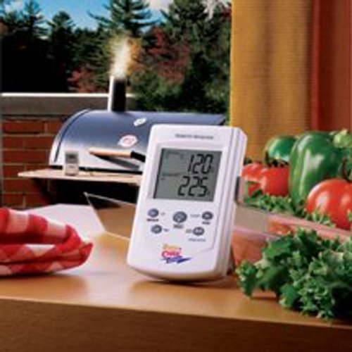 - Feature : Model: ET-73. Monitor internal temperature of smoked meats from 100 feet away. / Wireless receiver with LCD beeps and flashes when smoked meat temperature goes above your programmed temperature. / Monitor smoking chamber temperature. Receiver beeps and flashes if smoking chamber temperature falls out of your programmed range. / Count-Up & Count-Down Timer. / 2 PROBES! Monitor Chamber Temperature and Internal Food Temperature Wirelessly!