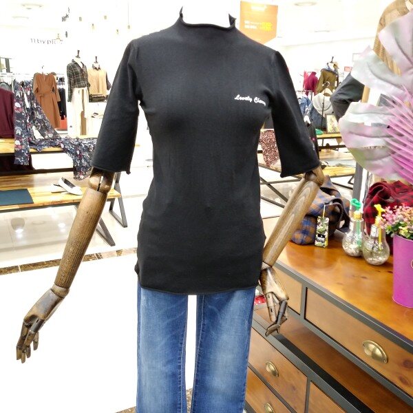 가슴과 소매라인에 자수가 포인트 들어간 깔끔한 니트 반팔티로 이너하시기좋은 티이에요