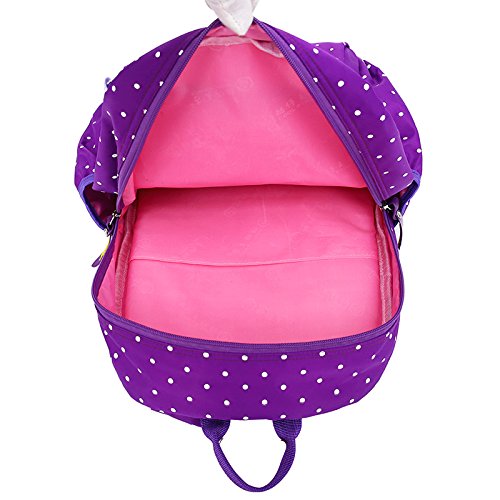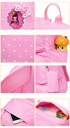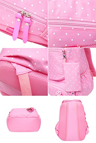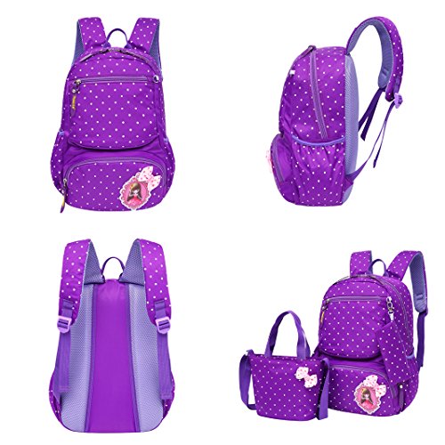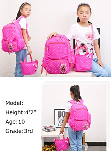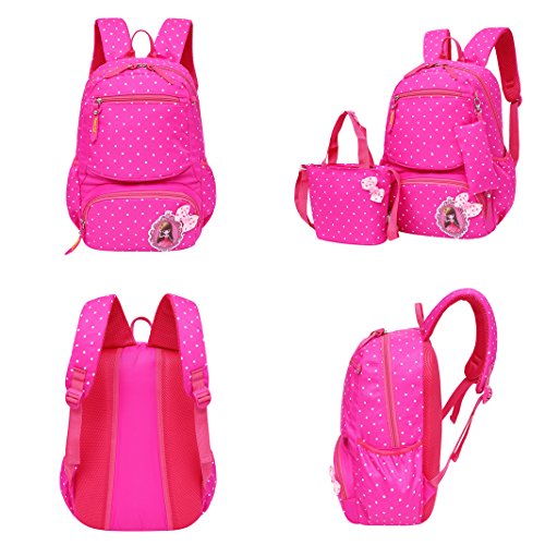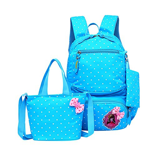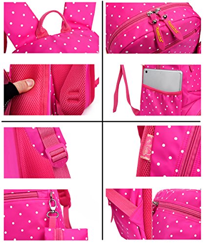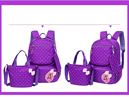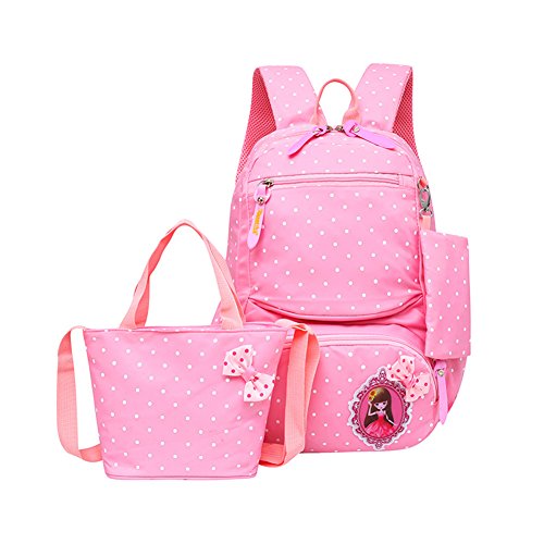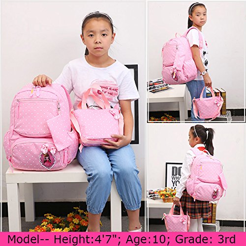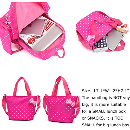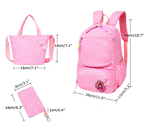Product Description 3pcs Bowknot Polka Dots Girls Backpacks for School Kids Book Bags Schoolbag Rucksack with Handbag/Cross Body Bag and Small Pouch Bag Set for Elementary Material: Nylon fabric polyester lining Structure: 1*Main pocket with laptop compartment for books, notebooks, exercise books, umbrella... 1*Vice pocket for small personal belonging 1*Front pocket for stationery 2*Side pockets Humanized: 3 PCS kit: 1 backpack, 1 matched handbag/cross body bag, 1 pouch bag Polka dots design Bowknot decorative Size:(L*W*H) ?Backpack--28*13*40cm/11*5.1*15.7 inch; ?Handbag--18*3*18cm/7.1*1.2*7.1 inch; ?Pouch--16*1*8 cm/6.3*0.4*3.1 inch; Package: 1*3 PCS Polka Dots Girls Backpack Set